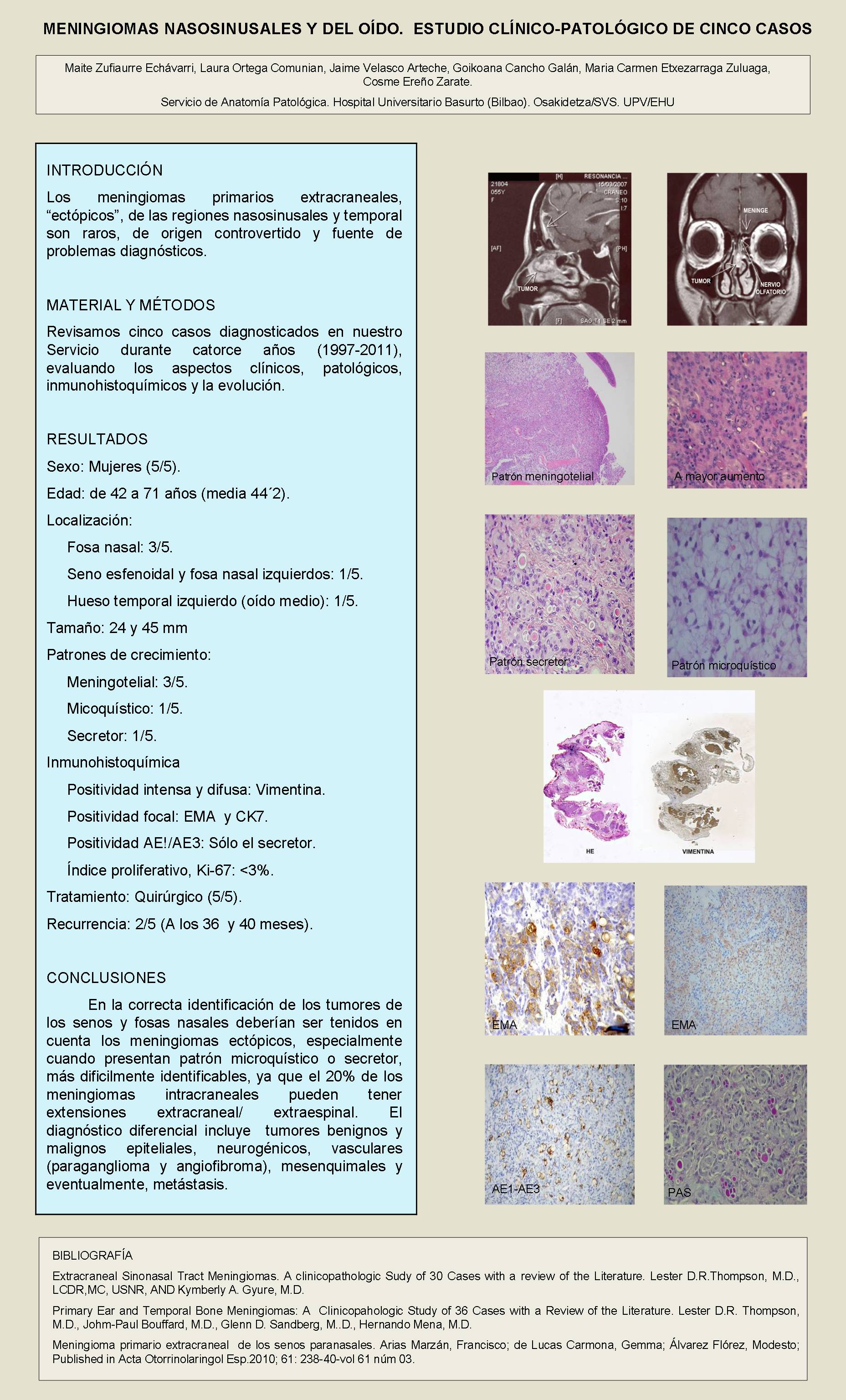 PosterXXXVSEAP012 - Meningiomas sinonasales y del oído. Estudio clínico-patológico de cinco casos. PosterXXXVSEAP012