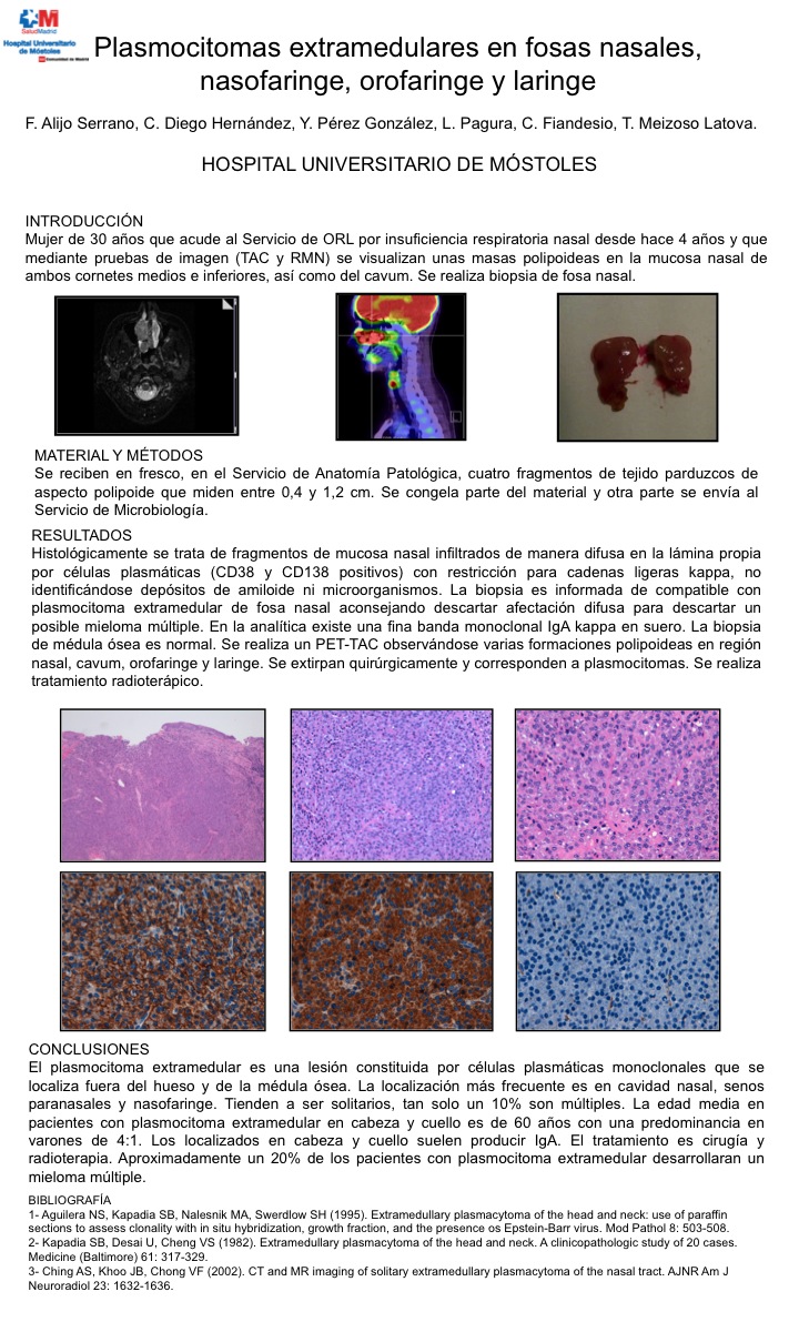 PosterXXXVSEAP019 - Plasmocitomas extramedulares en fosas nasales, nasofaringe, orofaringe y laringe PosterXXXVSEAP019