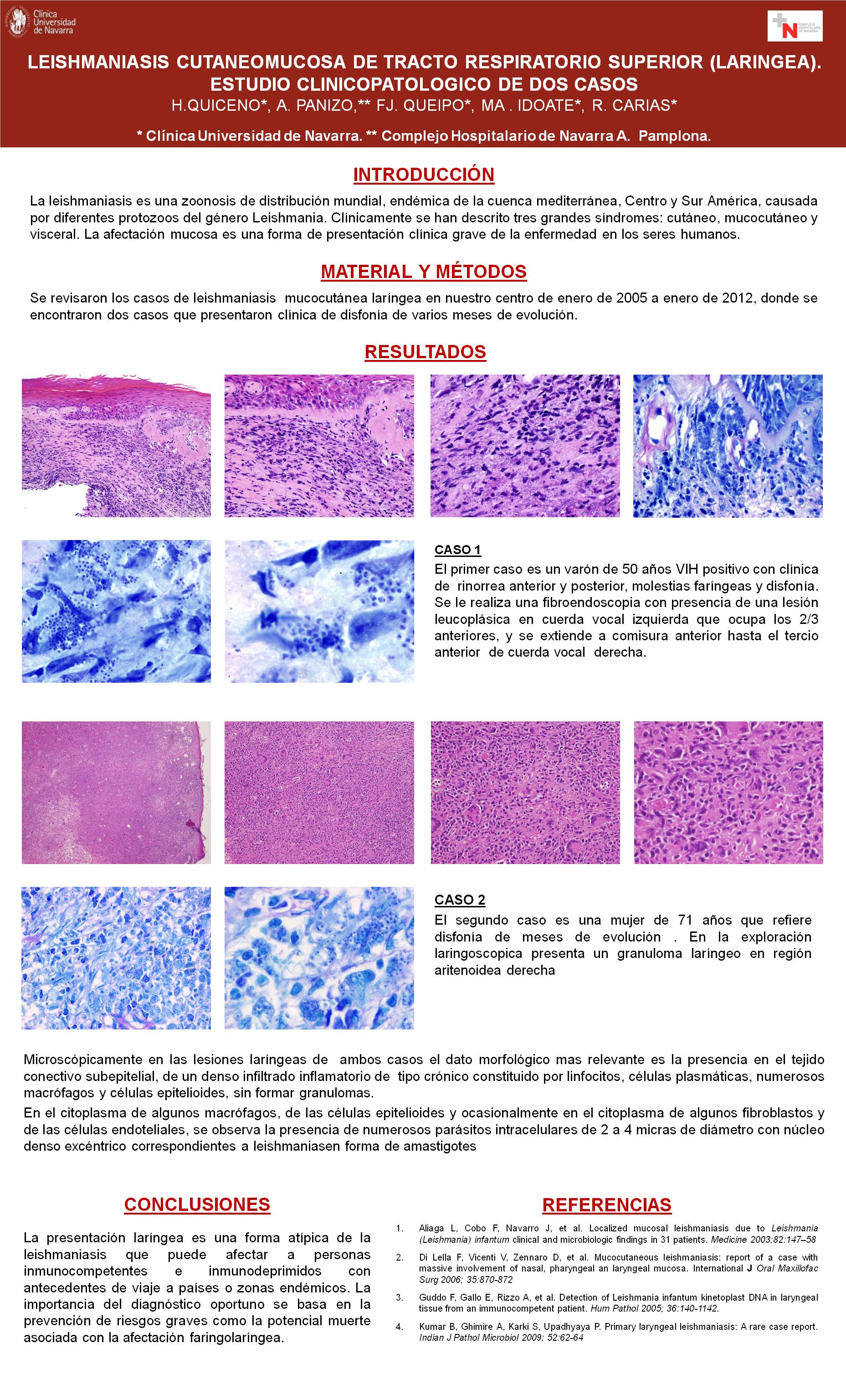 PosterXXXVSEAP020 - Leishmaniasis cutaneomucosa de tracto respiratorio superior (laríngea). Estudio clinicopatológico de dos casos. PosterXXXVSEAP020